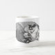 Grainy monochrome captures a cautious cat and blurred pup nose, glowing like a frosty October dawn. Adds a rustic note of companionship to morning rituals.