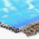 A quality printed throw has its advantages. This is a much finer weave throw than its loopier cousins, and though lighter, it is worth the investment for custom room accessorizing. The back is much prettier than the typical brown, and the fringe on the long sides very vivid, the selvage nicely done. Before photographing, I washed the throw in cold water, delicate, with a thicker woven throw the same size. On tumble dry low, this throw was dry in half the time as the other. This is a very practical quality if you use throws for furniture covers or to wrap up in frequently. The sleekness of the fabric makes it a great layer for accenting or protecting without the feeling of sitting on too much stuff. Perfect for napping or when you feel a light chill coming on. The color printing is beautiful and on this fabric, matched the design and color of my Photoshop image. This is an advantage for blending room fabrics and colors. The fringe on the short sides prints the colors from the design image and therefore varies from the side fringe. I streaked a white fractal line through the plaid pattern to give the illusion of weaving. This printed as crisp as an illusory thread, and put some white in the short side fringe, showing another advantage of print vs loomed- for artistic purposes, line lines, detail, and color integrity can be planned and preserved. My loomed throws have color limitations and more of a needlepoint texture. Print throws reproduce an exact image. The throw felt a little stiff straight out of the package, but this went away in the first delicate wash. Of course I searched the wash water for ink or bleeding and there was none.