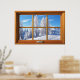 Enhance the decor of any room with this picturesque poster. The artwork creates the illusion of having a window that is encased in a brown wood frame with 6 panes of glass. The fresh snow covering the trees and ground makes you feel as though you are looking out at a picturesque winter scene. The original artwork is 36"W x 24"H which is the average poster size and was created at high resolution (300 dpi) so re-sizing it is not a problem. See other beautiful scenes for all 4 seasons in my store. Feel free to contact me if you have any questions.