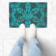 Frosty Ice Blue Snowflake Kaleidoscope Pattern Fiber Doormat