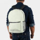 This backpack features a frosty pale green urban grunge background with a customizable name in the corner of the front pocket.