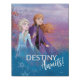 Frozen 2 | Elsa and Anna stand overlooking a valley of fall trees and off into the distance, featuring the phrase "Destiny Awaits!" written below.