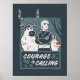 Frozen 2 | This woodcut style design features Sven, Kristoff, and Olaf standing in the forest with a panel that reads "Courage is Calling".