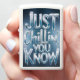 A close-up shot of the phrase Just Chillin You Know rendered in a 3D style with icy, crystalline textures. The letters appear to be made of ice, with icicles forming at the bottom. The background is a soft blue, reminiscent of a winter sky.