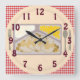 A fun and funny totally kitschy illustrated cartoon style retro art frozen dinner goofy fifties mid-century cheeky suburban housewife vintage aesthetic Salisbury steak food art on a plate comic design deluxe timepiece wall clock. Get a kitschy fun retro kitschy food art clock today.