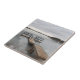 A ceramic tile featuring a photo of a dock on a frozen lake.