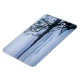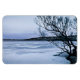 This flexible magnet features an impressionistic depiction of a scenic winter landscape of frozen Cayuga Lake viewed from Stewart Park in Ithaca, NY. It is one of the five Finger Lakes in upstate New York. The frigid icy cold day in February is illustrated by the lovely shades of blue, gray, black and white of the ice and sky. Willow tree branches in silhouette frame the foreground.