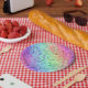 Bold and bright rainbow gradient across icy faceted crystal texturing.