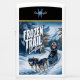 A colorful illustration depicts a snowy landscape with a musher and a team of three sled dogs competing in a winter race. The words Frozen Trail Challenge are prominently displayed, emphasizing the theme of the image.