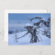 Postcard of frozen pine tree with an appearance of a wooden alien creature.
