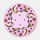 Fruit And Leaves Round Magnet by Kristie Hubler with undulating leaves, apples, peaches, and berries like blueberries, blue raspberries, gooseberries, and golden raspberries
