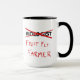 Biologist (crossed out) - Fruit Fly Farmer - biology humor in red and black on mugs in assorted styles.