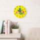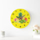Fruit themed citrus wall decor clock designed as a kitchen clock that adds a little character to kitchen decor in a modern way. Change the background color to suit your needs to leave it as it is.