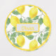 Custom yellow kids Labels. Create your own with name. Pattern with yellow lemons and green leaves.