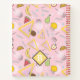 Personalize this colorful abstract memphis patterned notebook with a monogram for a stylish back to school gift. Designed with a fruit and memphis style graphics print on a pastel pink. Choose your paper style and also color of the spiral binding to customize it even further, See other other color choices and coordinating items in this design collection at KidsUnique on Zazzle.