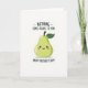 This card shows a friendly, pear-shaped character centered on a bright white background, drawn in lime green with gentle shading that makes it look pleasantly plump. A small dark-brown stem sits on top with one curved deep-green leaf leaning to the side, like a little wave. The pear has simple black dot eyes looking straight ahead, a small curved smile, and round pink cheeks that give it a sweet, affectionate look ❤️. A soft gray shadow underneath anchors it on the page, keeping the scene minimal and airy. At the top, the message “NOTHING COME-PEARS TO YOU” appears in thick, casual, hand-drawn lettering in dark ink. Just below that line, “HAPPY MOTHER’S DAY!” is set in the same dark lettering, stacked above the character so the words feel like they’re cheering it on 🌼. The overall layout keeps the text in the upper area while the green character remains centered, with plenty of white space framing the leaf, blush cheeks, and gentle shadow.