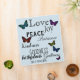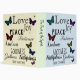 This binder features the apostle Paul's description of the fruit of the Spirit (Galatians 5): Love, joy, peace, patience, kindness, goodness, gentleness, and self-control. Featuring fancy fonts interspersed with bright multicolor butterflies against a background that's pale blue on the front, pale yellow on the back, and pale green on the spine (or click customize and choose any color background you prefer). Personalize with your text on the spine. A great gift for Sunday School teachers, ministers, or any Christian who likes to be reminded of Biblical virtues. Perfect for classroom materials, recipes, scrapbooks, etc.