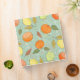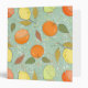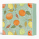 Fruit pattern with lemons, oranges, lime and grapefruit. Bright citrus fruits on a light green background with multicolored splashes of paint.