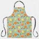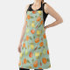Great color and even though I ordered the kid size, it covers well enough to use during the holidays. I am not a big woman and prefer a shorter apron. I stand 5"6" and the length of the garment goes to mid-thigh. The tie straps fit well at my waist and even though there is no neck strap adjustment, the opening is plenty big enough. I am happy with the size and fit. I am sharing my apron with my 10 year old grandson, too! The color is vibrant and looks good, as shown on the website. The stitching looks strong and reinforced. Photographed is front side and back side of the apron, reinforced straps and coloring. My phone camera may not be the best at showing the details.