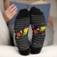 This fun Halloween socks are bright and colorful. The small print is crisp and shows the fun details. The softness of the socks feels nice on my feet and ankles. .