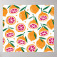Fruits stamp their way into a seamless pattern, perfect for fabric and wrapping paper. Fresh and fruity!