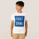 Introducing our charming "Fruit Stand Road Sign" graphic tee for boys! This vibrant and playful design features a classic road sign motif, with bold white lettering spelling out "Fruit Stand" against a cool blue background.