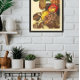 The canvas is meticulously wrapped and presented in a sophisticated black frame, offering a contemporary and refined finish that complements any sophisticated interior. A testament to the traditional craftsmanship of our mother-daughter duo, this framed masterpiece serves as a warm and inviting focal point, ideal for an elegant kitchen, a cozy breakfast nook, or a formal dining room.