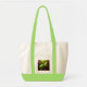 It has sturdy handles and is a canvas tote. It is just what I wanted for my neice to take stuff to the beach on their honeymoon!! The printing was just as pictured.