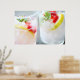 Two glasses of a refreshing drink made with fresh fruit, mint and crushed ice