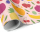 This wrapping paper pattern is a delightful celebration of vibrant fruits, perfect for adding a touch of freshness and fun to any gift. The design features an array of colorful fruit illustrations, including yellow bananas, red apples, green pears, purple grapes, and pinkish-red pomegranates, all set against a light yellow background. Scattered among the fruits are smaller elements like green leaves, blueberries, and flowers in shades of purple and blue, adding to the playful and lively feel of the pattern. Ideal for festive occasions, birthdays, or any celebration that calls for a cheerful and eye-catching presentation.