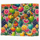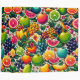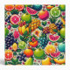 The pattern showcases different types of fruits, from juicy berries to sun-kissed citrus, all rendered in a bright and cheerful color palette that captures the essence of nature's bounty. The playful arrangement of fruits creates a fun and refreshing aesthetic, perfect for adding a touch of whimsy to any space or product.