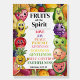 Fruits of the Spirit, this Christian design features a colorful display of cute fruits with smiling faces and a bible verse for "Fruits of the spirit".