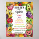 Fruits of the Spirit, this Christian design features a colorful display of cute fruits with smiling faces and a bible verse for "Fruits of the spirit".