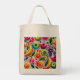 The printing came out very well, better than I had anticipated. The natural color fabric is sturdy with strong seams and comfortable handles. This tote fits easily over my shoulder. As it is filled, the bottom flattens out--very cool! I would buy this product again. This grocery tote holds a lot of groceries! The image quality was very good. The colors were a little darker than I had expected. The darkness may have been due to printing on a natural color fabric rather than on white. The cat design is attractively centered on the tote. The spirit of the design is very lively, just as it appears on the Zazzle website.