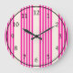 Fuchsia and beige five stripes pattern large clock