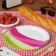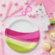 Paper plates featuring bold Fuchsia & Lime Green Waves design