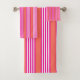 Fuchsia and living coral five stripes pattern bath towel set