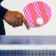 Fuchsia and living coral five stripes pattern ping pong paddle