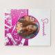 Fuchsia and White Custom Photo with Name Jigsaw Puzzle