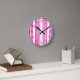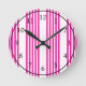 Fuchsia and white five stripes pattern round clock