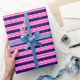 Fuchsia and white five stripes pattern with blue wrapping paper