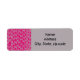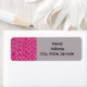 These return address labels have an art deco design of gray vertical lines with gray diagonal lines connecting them on a field of fuchsia.