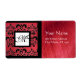 FUCHSIA BLACK RED SILK DAMASK, SQUARE MONOGRAM LABEL