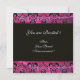 FUCHSIA BLACK SILK DAMASK MONOGRAM , Gold Metal Invitation