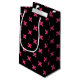 Fuchsia cross stitches on black small gift bag