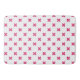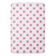 Fuchsia cross stitches on white bath mat