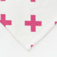 Fuchsia cross stitches on white fleece blanket
