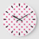 Fuchsia cross stitches on white large clock