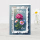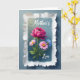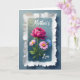 Designed with a floral still life at its center, this card features a large fuchsia flower with layered petals that feel like they’re opening toward someone you love ❤️. Around it sit three smaller daisy-like blooms—two soft pink with sunny yellow centers and one cool blue—arranged close together like friends leaning in for a photo. Deep green leaves spread beneath the flowers, grounding the bouquet and adding contrast against the calmer background. The artwork sits inside a neat rectangle with rough, torn-looking edges that create a layered, paper-on-paper effect over a muted blue-gray field. Inside the frame, the backdrop fades from pale sage near the top to deeper teal near the bottom, giving the scene a gentle, intimate glow 🌼. The word “Mother’s” appears near the top in flowing white lettering, hovering above the main fuchsia bloom. The word “Love” is placed lower in matching white lettering, tucked beneath the smaller flowers. A faint shadow traces around the textured border, and the gradient background shifts from soft green at the top to teal below.
