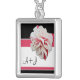 "Fuchsia Flower" Initials Pink & Black Necklace